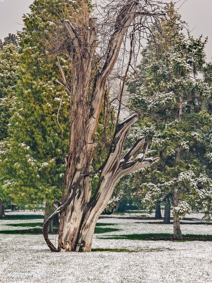 再看看这张,前面有松柏后面是雪地和白雪点缀的古建筑,前后景之间没有因为明暗对比而造成细节丢失,前景处的松柏枝干清晰可见,而在5x长焦的记录下,前后对比让画面更具层次感。f/3光圈提供了充足的进光量,即便当天处在阴天当中也确保了画面细节的清晰。