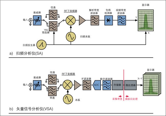 当前一代频谱分析仪包括许多数字要素,如 ADCs、DSPs 和微处理器。但基本扫频方法仍大部分相同。