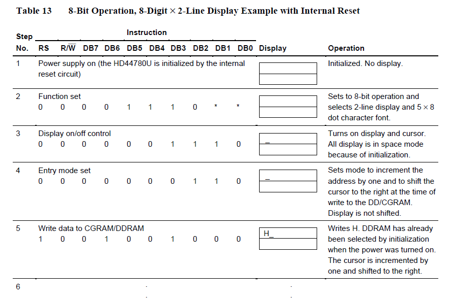 那初始化的流程是怎么样的呢?我们还是看看HD44780的数据手册吧,如下图所示: