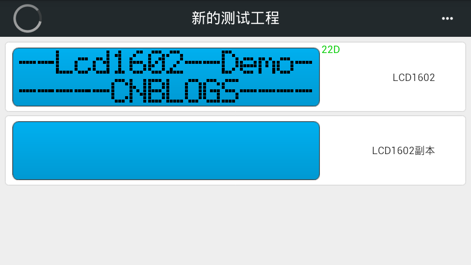 #include DDRA |= BIT(6)|BIT(7); //PA6->RS,PA7->RW PORTA |= (BIT(6)); *******************************************************************************/ MCUCR = 0x00; //这里是入口 ///////////////////////以下为lcd1602.c///////////////////////////////// #include "lcd1602.h" //us延时函数 //ms延时函数 //写数据函数 //字符显示初始地址设置 //在第X行Y列开始显示,指针*S所指向的字符串 //在第X行Y列开始显示Wdata所对应的单个字符 ////////////////////////////以下为lcd1602.h////////////////////////////////////////////////////////// #ifndef _LCD1602_H #include "iom128v.h" #define uchar unsigned char #define RS_ON PORTA |= BIT(6);//RS置1 #define RW_ON PORTA |= BIT(7);//RW置1 #define E_ON PORTG |= BIT(2);//E置1 void delay_us(uint n); #endif //////////////////////////////////////////////////////////////////////////////////////////////////////////////////////////////// 写博文时我手头上暂时没有LCD1602,所以用单片机驱动手头上的虚拟器件模块,在手机上看到的效果如下图所示,与实际LCD1602液晶显示屏效果是一样的: