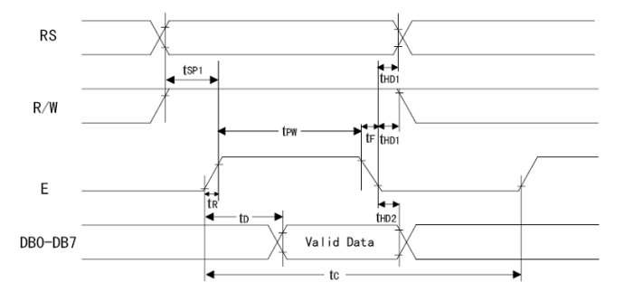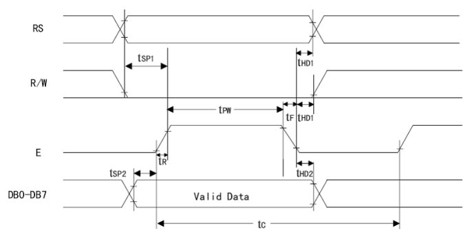 3.写命令:输入RS=0,RW=0,E=高脉冲。输出:无。