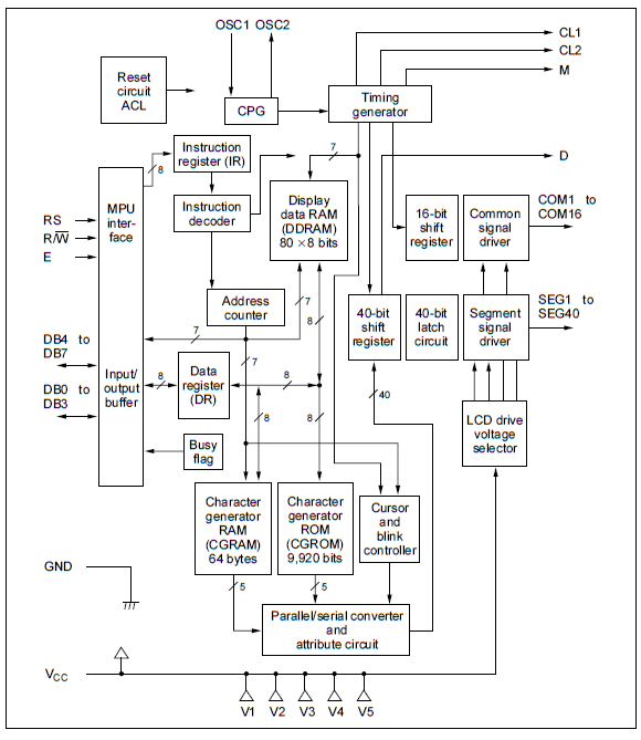 你问我怎么会知道需要解码什么的?HD44780数据手册是这么写的,其实我都不需要写什么博文了,把英文数据手册一页页贴上就行了,犯得着吗我。看下面这张HD44780功能框图就知道了,后续会参考到,很重要的)