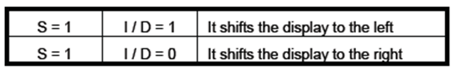 (总结一下:光标的位置实际就是“地址计数器Address Counter/AC”的位置,I/D用来控制AC增加或减小。Shift就是屏幕移动,实际使用注意方向即可,如果只是屏移操作,是不会影响AC值的,是不是光标的位置也不变呢?当然要变,因为屏幕平移了,AC没有变即光标位置没有变,但相对位置变了。要注意这个指令与下一指令的区别:这个指令必须要有数据写入到DDRAM后才会相应有变化,而下一个指令是不需要有数据写入,直接控制光标或屏幕移动)