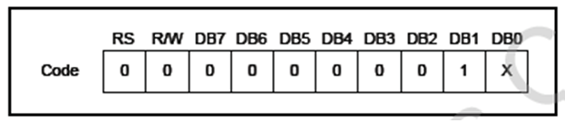 (总结一下:清屏指令就是将所有80个字符地址写“Space”的字模地址,即20H,CGROM表中第一行从左到右第三个,也是空字符的ASCII码)