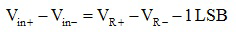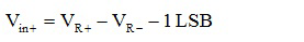 方程10描述了ADC输出在差分模式下饱和时的输入电压。请注意,Vin+和Vin-都必须在选定的参考电压范围R+到VR-为有效的转换结果。