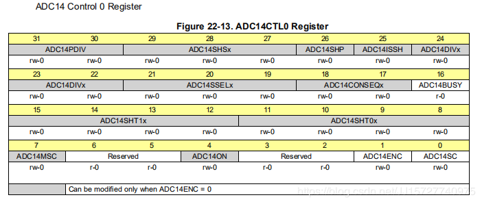 22.3.1 ADC14CTL0寄存器(偏移量= 00h)[复位= 00000000h]