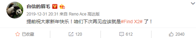 “提前祝大家新年快乐!咱们下次再见应该就是Find X2了!”
