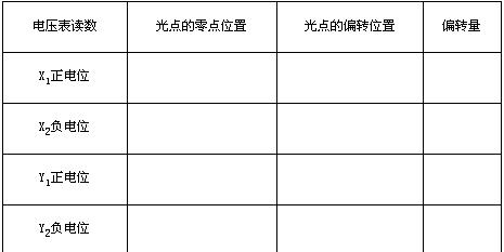 在同一坐标中,对于Y偏转板和X偏转板画出所加电压(正和负)对偏转(右和左)的图象;以所加电压为纵坐标。