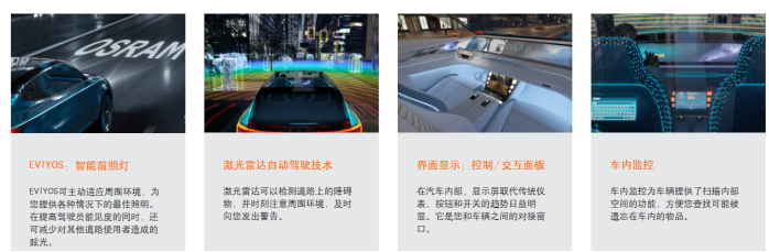 坚持将开创性照明理念与顶尖技术相结合,欧司朗致力于在四个主要领域提供先进的产品与解决方案,提供高品质的用户体验: