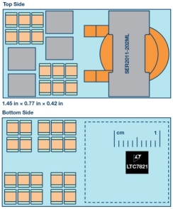 图 4.一个完整的总线转换器使用电路板的正反面进行布局,仅需使用电路板正面 2.7 cm2 的面积。