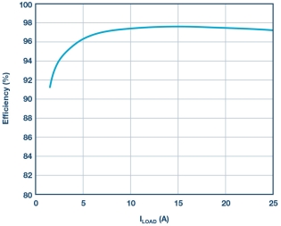 图 5.在 48 V 输入、12 V 输出和 400 kHz fSW 下的效率。
