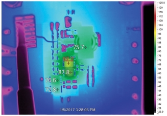 图 6.图 2 中混合式转换器解决方案的热成像图。