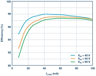 宽 VIN 范围:10 V 至 72 V (80 V 绝对最大值)
