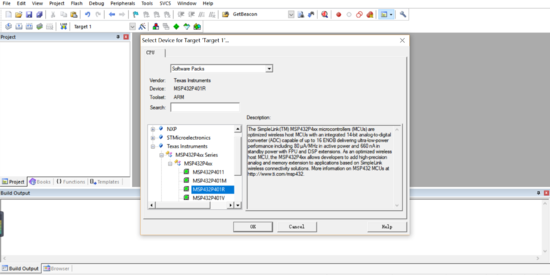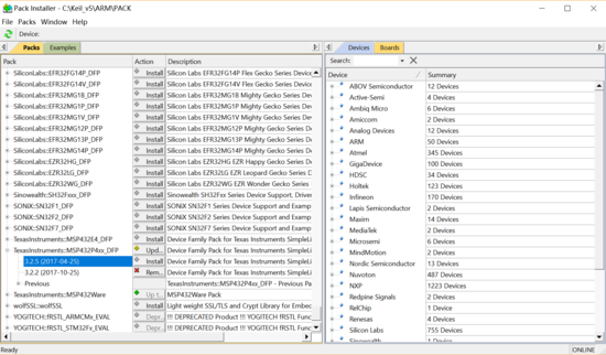 1.准备工作:打开keil5的Pack Installer,选择要安装的芯片包,我使用的是MSP432P401R芯片,安装好对应的芯片包。