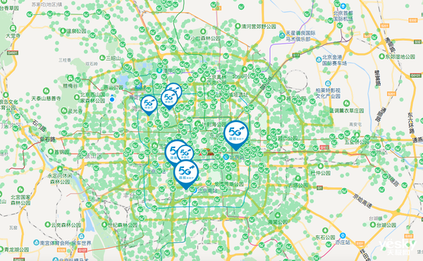 (上图中绿色部分为5G信号覆盖区域)