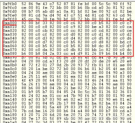 下图是第一个程序在Flash中的位置,也就是bootloader程序,可以看出,是从0x8000开始存放的。