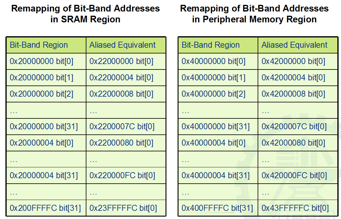 SRAM bit-band region - Data accesses to this region are remapped to bit band region. A write operation is performed as read-modify-write.