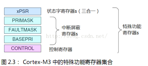 Cortex‐M3 还在内核水平上搭载了若干特殊功能寄存器,包括:
