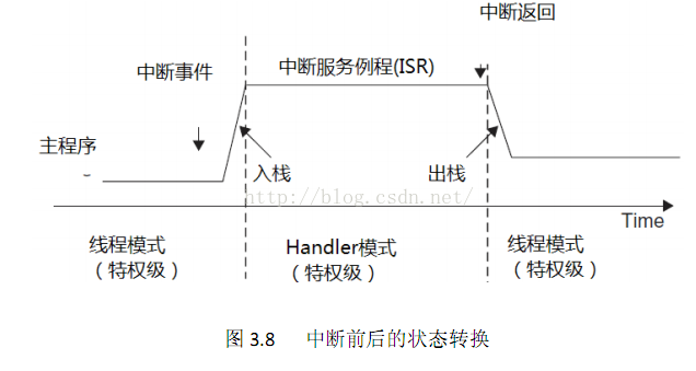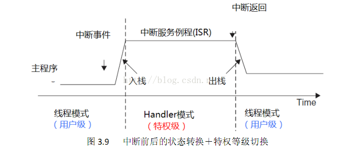 Cortex‐M3 支持 2 个模式和两个特权等级。handler模式和线程模式; 特权级和用户级。