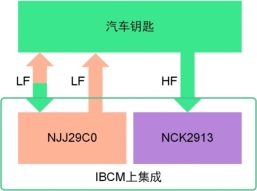 5) 无钥匙系统:IBCM方案中,集成了PEPS无钥匙系统,采用NXP的NCK2913、NJJ29C0,作为高低频基站与钥匙端通信,组建无钥匙系统。系统包含IMMO(发动机防盗系统)认证,凭借射频(315MHz、434MHz)的远距离通信,实现REK(遥控门)认证,同时在此基础上实现PKE(无钥匙系统)认证,以上三种认证通信组成PEPS无钥匙系统,功能框图如下:
