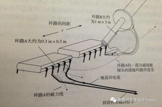 a环路输出信号和它的信号回流形成一个环路,根据右手螺旋定则形成变化的磁场是垂直于环路向外辐射,穿过示波器探头和接地线形成的环路。