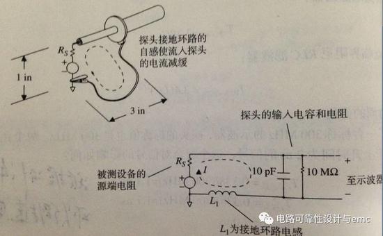 对于一般示波器探头的接地线规格为awg24,接地环路为1*3in,电感大概是200nh,输入电容10pf,时间常数