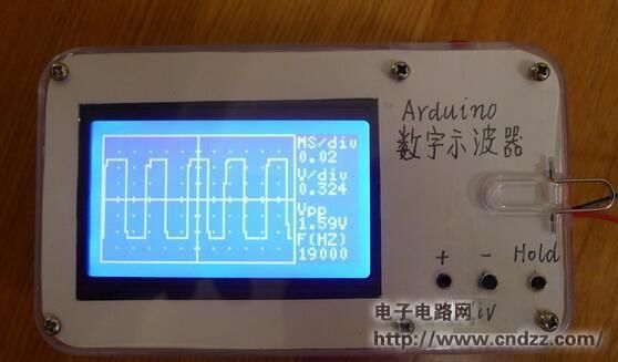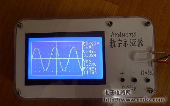 最终产品的主要参数:频率响应:10Hz-50KHz电源: 5V LCD LCD屏幕:128x64(ST7920)测量显示区域:96x64信息显示:32x64,显示测试信号的频率,Vpp等;同步:上升沿触发扫描速度:0.02ms/div〜10ms/div,载有9个1-2-5保持功能:冻结显示的波形和参数二,基本测试使用Arduino项目的最大优势是其丰富的资源,并且不需要太多的SCM知识。我使用的是u8glib LCD储存库,从而使编程更容易,否则LCD驱动器将花费您很多时间。 U8glib下载:u8glib_arduino_v1.13.zip(989.55 KB,下载:2577)这是我使用Arduino UNO构建的第一个测试电路,使用ST7920控制的12864 LCD LCD。只要将以下代码中的输入法下载后编译,就可以实现数字示波器的基本功能,会不会更简单? #包括//声明U8GLIB_ST7920_128X64_4X u8g(13,12,11);语句LCD SPI Com:SCK = 13,MOSI = 12,CS = 11 int x,y;绘制点坐标int Buffer [128];缓存存储阵列void setup(){}样本void sample(){for(x = 0; x 《128; x ++)Buffer [x] = AnalogRead(A0); (x = 0; x 《128; x ++)Buffer [x] = 63-(Buffer [x] 》》 4)的信号采样;计算y值}显示void draw(){for(x = 0; x 《127; x ++)u8g.drawLine(x,Buffer [x],x,Buffer [x + 1]);画两条线u8g.drawLine(64,0,64,63);绘制轴u8g.drawLine(0,32,128,32);对于(x = 0; x 《128; x + = 8)//绘制轴刻度u8g.drawLine(x,31,x,33); for(x = 0; x 《64; x + = 8)u8g.drawLine(63,x,65,x); u8g.drawFrame(0,0,128,64);绘制边框} void loop(){sample();示例u8g.firstPage();清除屏幕做draw();显示while(u8g.nextPage());
