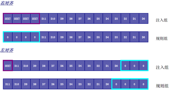 对于注入通道,转换结果是减去偏移量的值,可以为一个负数,在右对齐时扩展位位符号位。