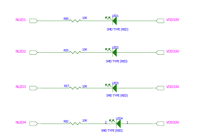 由于LED连接着GPM0-GPM3,所以通过上面的内容可以知道,GPMCON设置的值应该为0x00001111,意思是将GPM0-GPM3设置为输出,这样通过设置GPMDAT[5:0]来控制响应针脚的高低电平,使LED亮或灭。