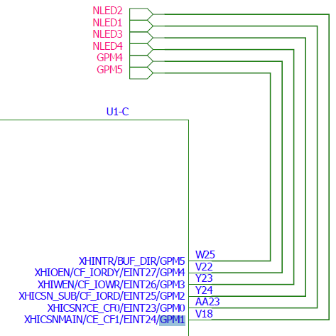 可知在OK6410上4个LED灯是通过GPM这一组的GPIO口控制的,分别是GPM0-GPM3四组。