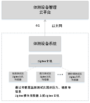 针对体测设备分布分散的特点,将体测设备新增无线模块,使各类别体测设备实现无线组网,体测设备获取的数据通过无线传输方式传输至相应的网关,由网关通过4G或以太网将数据反馈至管理后台。将体测设备无线化能够减少登记成绩的时间和人员成本,解决数据记录错误、漏记以及学生代考等问题,并且能够将局域网内数据统一保存至管理平台,实现数据可视化。