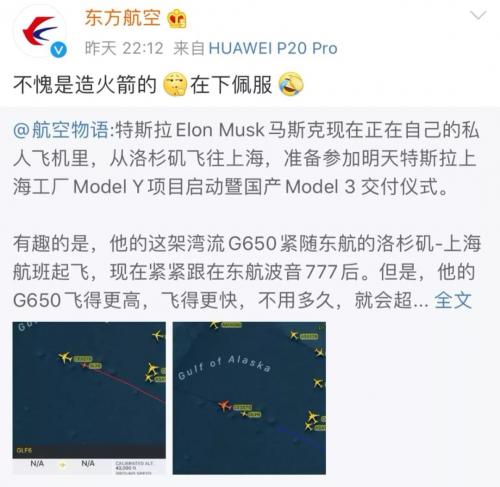 不过,后来因为马斯克的私人飞机飞行高度更高,且“火力全开”,没过多久就超过了波音 777,最后抢先抵达上海。