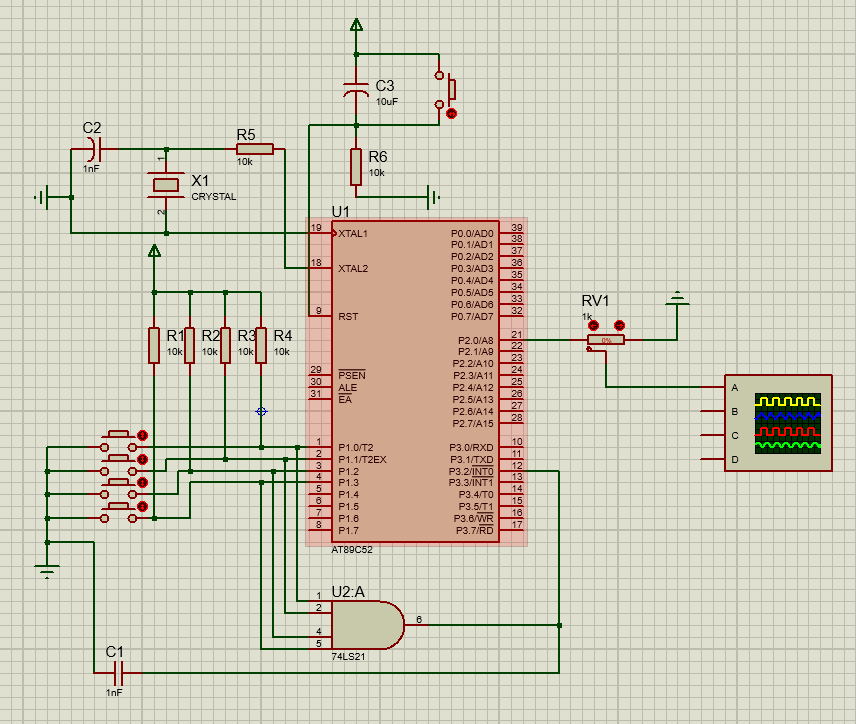 第1步:安装一个单片机仿真图软件,推荐使用Protues,这是一款专门用来仿真单片机的,功能十分强大。我用的是Protues8.6,下载安装步骤大家就自行查询了,学习起来比较简单,半小时就能掌握了。下面是我的仿真图形。