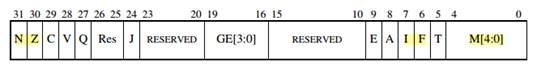 M[4:0]:用来设置处理器的工作模式具体数据见本文开始的介绍。