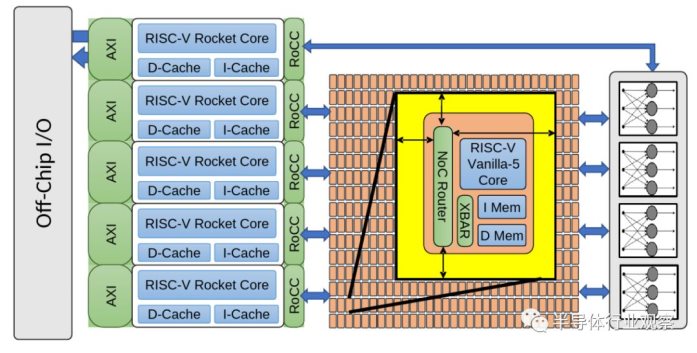 通用层几乎可以执行任何操作,例如通用计算,内存管理以及控制芯片的其余部分。为此,他们集成了Free Chip Project的五个高性能乱序RISC-V Rocket内核。