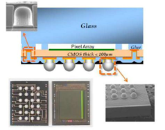 CEA-Leti [19]发布了一个集成背面照明(BSI)与控制逻辑单元的晶圆级混合键合封装,证明低节距(5µm至24µm)焊盘对准精度在400nm以下,并使用了2x6金属层0.13µm 双大马士革镶嵌工艺(图15)。