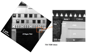 图8:6x55µm 28FDSOI Via Middle 集成TEM视图,对测试载具良率没有影响,通过了TDDB、EMG和TC测试