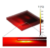 顶层裸片上的60个微通道,通道深125 µm,宽75 µm,H2O /乙二醇混合物,在0.75 0,75 cm3/s,没有散热器时,T>450°C