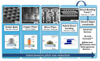 为避开非键合区域,必须优化焊盘设计和表面抛光工序。套刻精度优于250 nm的高性能对准系统[20]能够实现最低7µm的高密度节距(图16)。