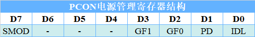 PCON主要是为CHMOS型单片机的电源控制而设置的专用寄存器,单元地址是87H,其结构格式如下: