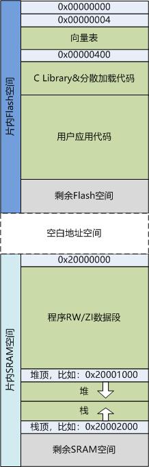 总之,这个分散加载文件最终把代码在存储空间内放置成了类似下图的形态: