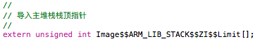 这个是编译器识别的特殊栈标号,可以在分散加载或者汇编或者C语言中使用,还记得我们在第二篇文档里面讲到的,0x00000000地址(向量表首地址)放置主堆栈指针MSP,0x00000004地址放置PC指针,所以我们先导入这个标号: