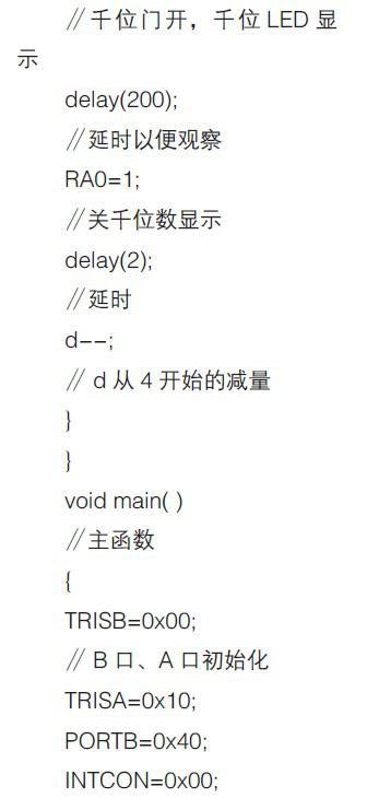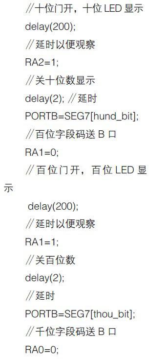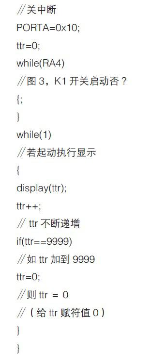 根据图3 的硬件电路,用C 语言编写的0-9999 加计数器的源程序,命名为pic0.4.c,其程序清单如下: