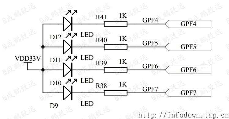 设置GPFDAT,可以将led灯亮或灭,GPFDAT的相应位置1灯灭,置0灯亮