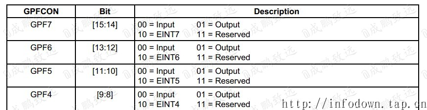 通过设置GPFCON将GPF4-7设置为输出