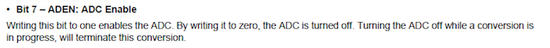 ADCSRA = 0b10000111;