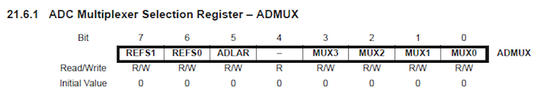 ADMUX = 0b01100000;