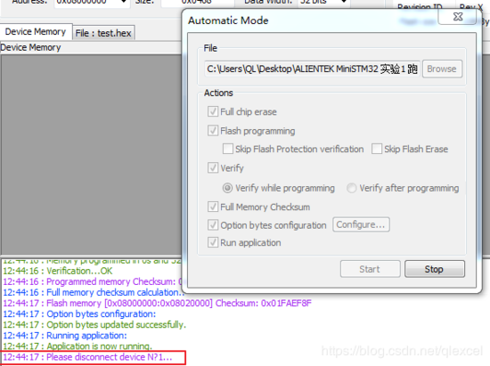 勾选相关设置,比如是否全片擦除、是否检验、是否配置Option bytes、下载完成是否自动运行