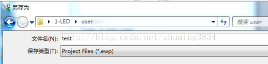 5.保存.ewp文件到刚才新建的文件夹1-LED --> user下,取名test 。