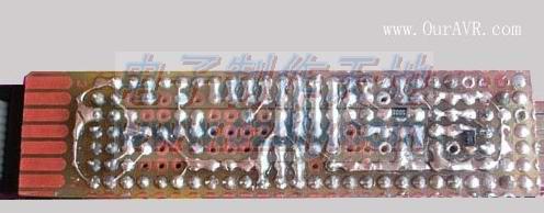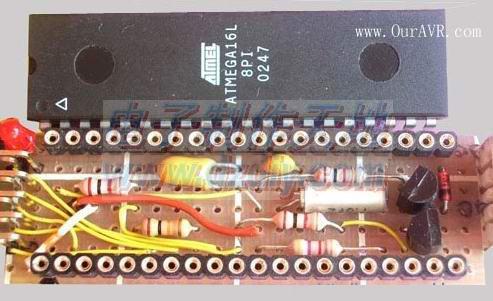 但使用贴面IC一个不好的地方是,芯片无法拆下来(如果我们要重新烧录芯片的ROM,能拆下来就方便多了)。所以,这个活动,我们推荐使用DIP40封装的Mega16. 以下是红日制作的实物图: